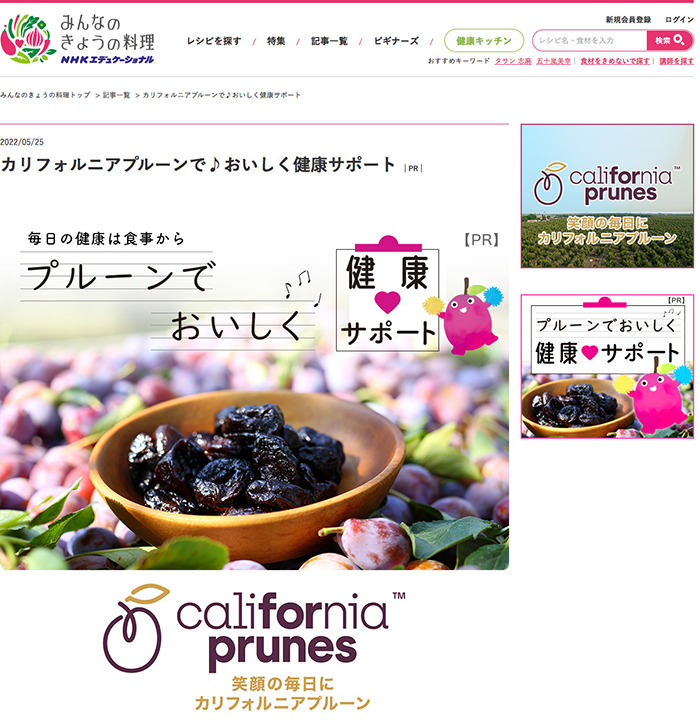 NHKエデュケーショナル「みんなのきょうの料理」の「カリフォルニアプルーン協会」PRページの制作を担当いたしました